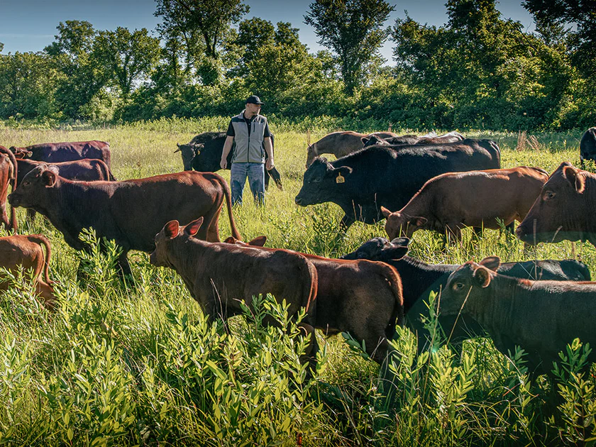 Grass-fed and pasture-fined beef. American regenerative farms and pastures.